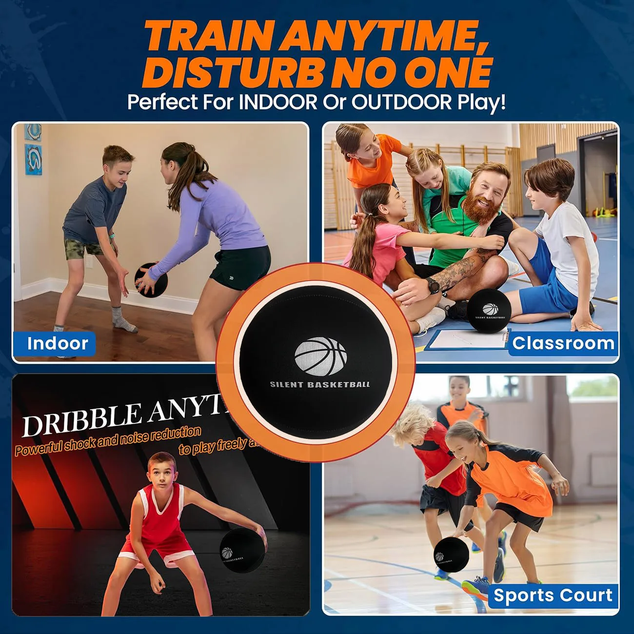 – Silent basketball designed to minimize noise while maintaining an authentic feel.
