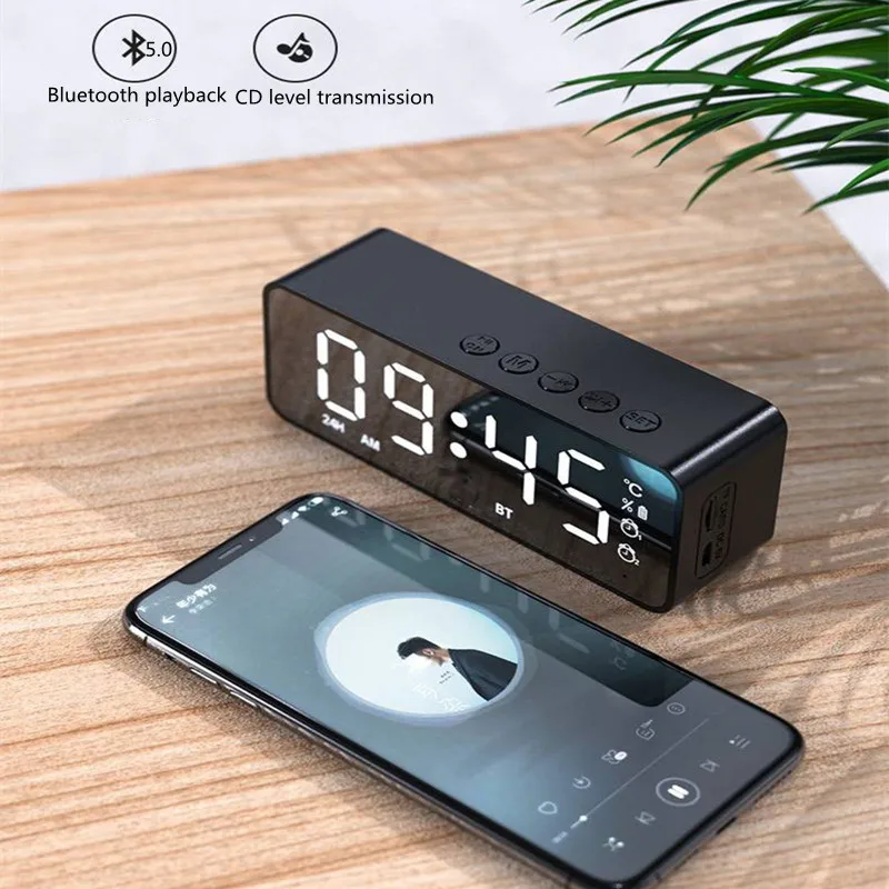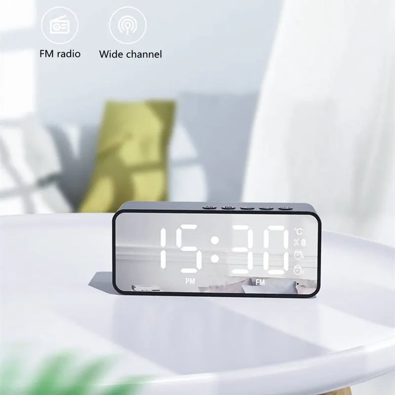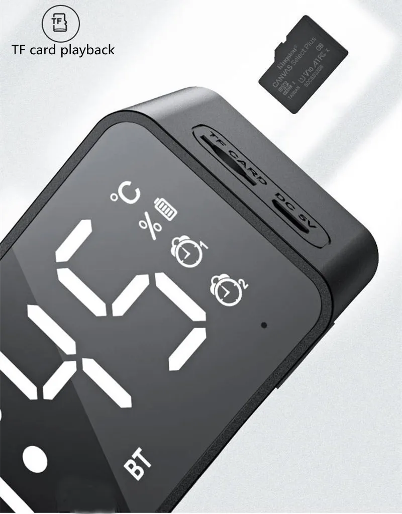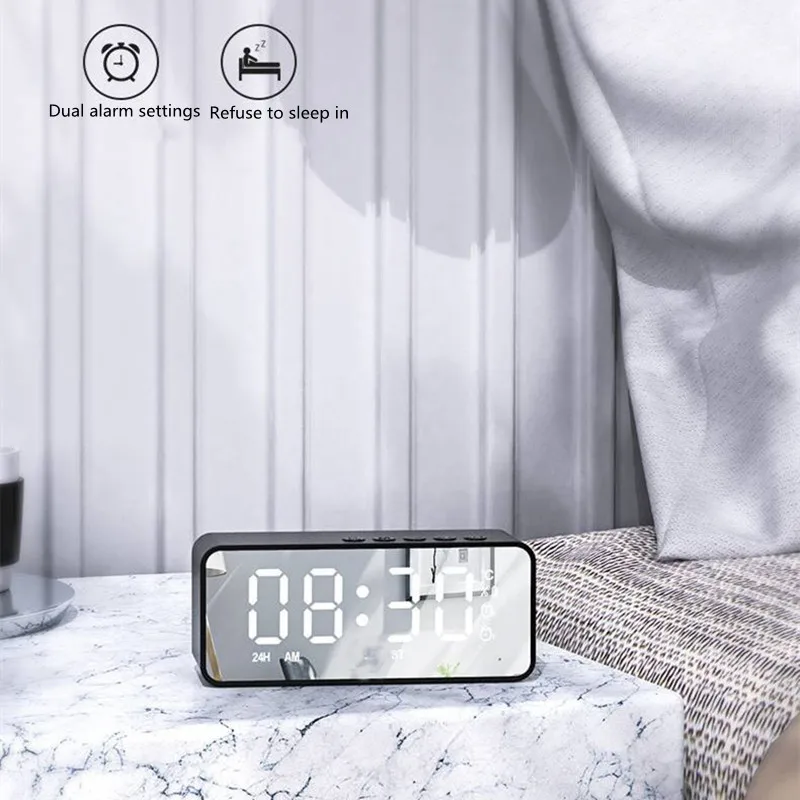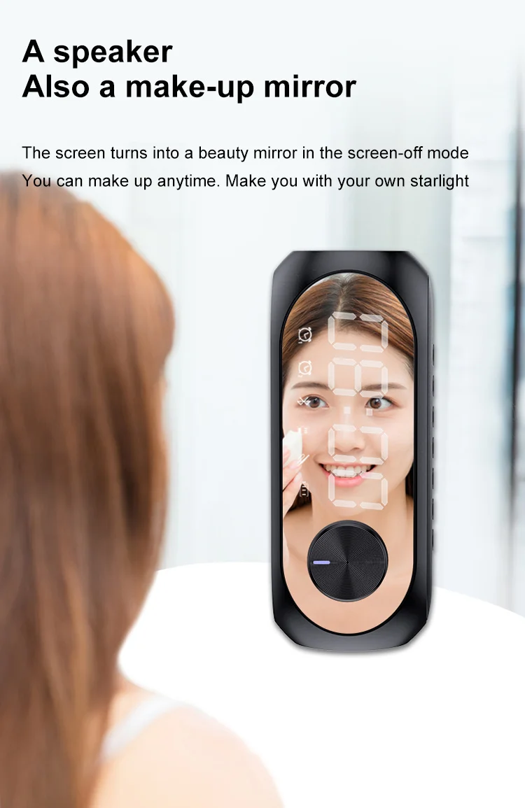 4、Dual Alarm Clock Reminds: The clock display is both a speaker and an alarm clock. The clock display adopts a large mirror screen, which can be used as a small mirror. When not listening to music, it is a digital clock, with a large mirror screen to display the time in real time.