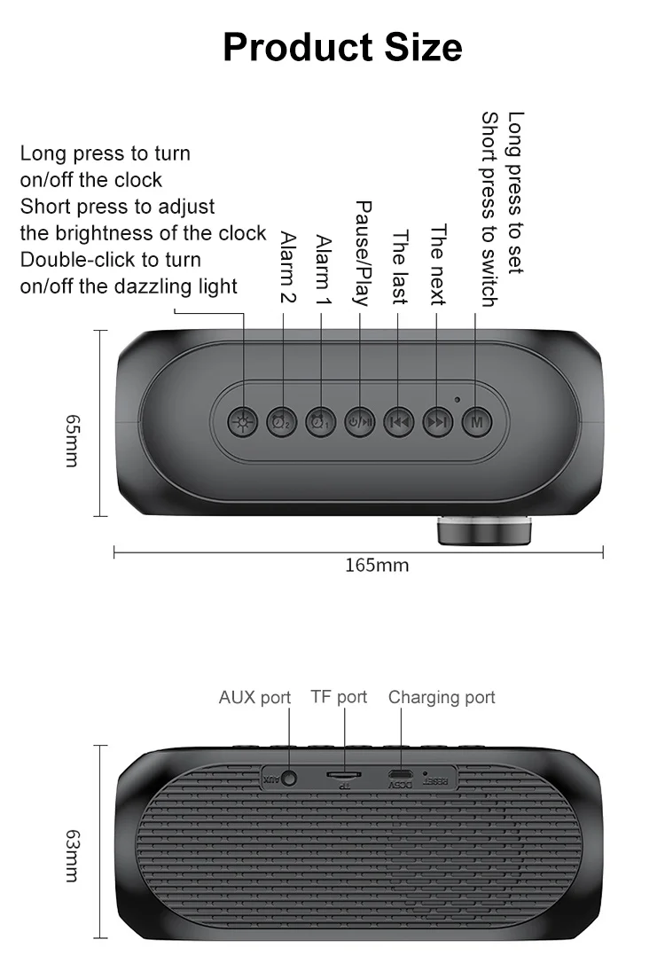 | AYEBEAU Model | S8 Alarm Clock Radio FM Bluetooth Speaker Portable Subwoofer Wireless |