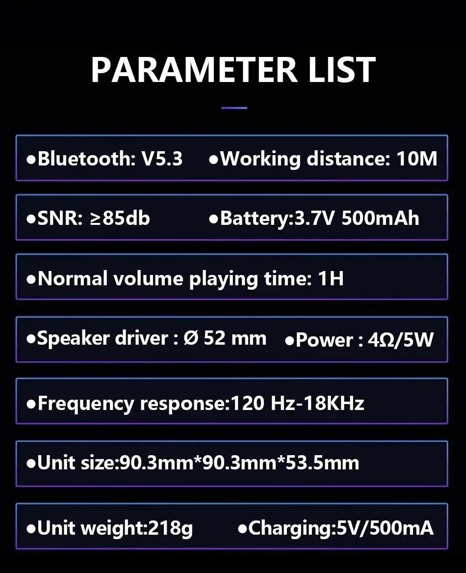 • TF FM Card Support :This speaker supports TF FM cards, allowing you to play your favorite tunes directly from the speaker without needing to connect to a device.