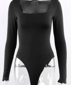 Be the first to review “Long Sleeve Bodysuit with Square Neck Design for Women in Basic Black”