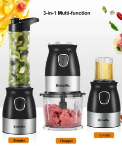 Biolomix Food processor, 3 in 1 Personal Blender/Food Chopper/Electric Coffee Grinder, Multifunctional Single Serve Blender with Travel Lid for Making Smoothies, 500W Powerful Motor, Stainless Steel Blades.
