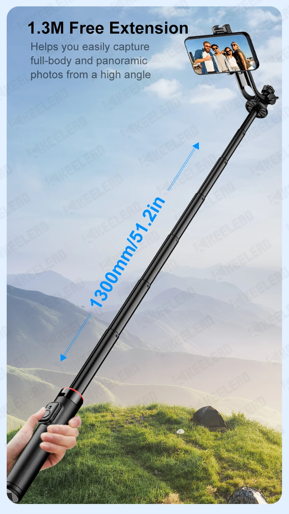Helps you easily capture full-body and panoramic photos from a high angle.