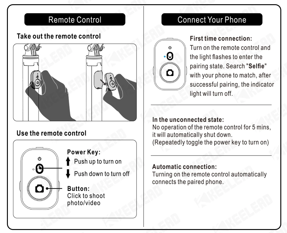 (The remote control cannot be recharged, only batteries can be replaced. Battery model: CR2032)