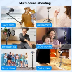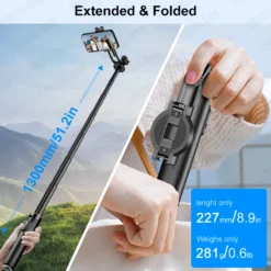 – Magnetic selfie stick tripod with a detachable phone clip and remote control for easy photo and video capture.
