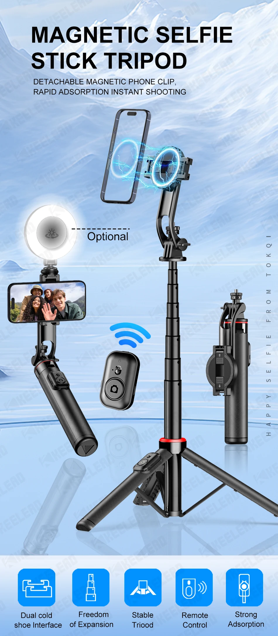 C20 Magnetic Selfie Stick Stable Tripod Stand for Cell Phone with Wireless Bluetooth Remote for Iphone Android Phone Shoot Vlog