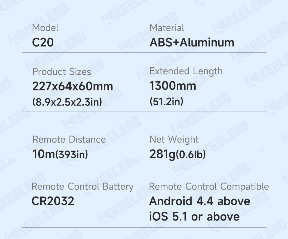 | Model Number | C20 Magnetic Selfie Stick Stable Tripod Stand |