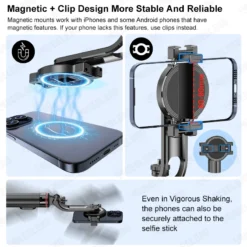 – Magnetic clip design for stable shooting, compatible with iPhone 12 and above or with clip for non-magnetic phones.