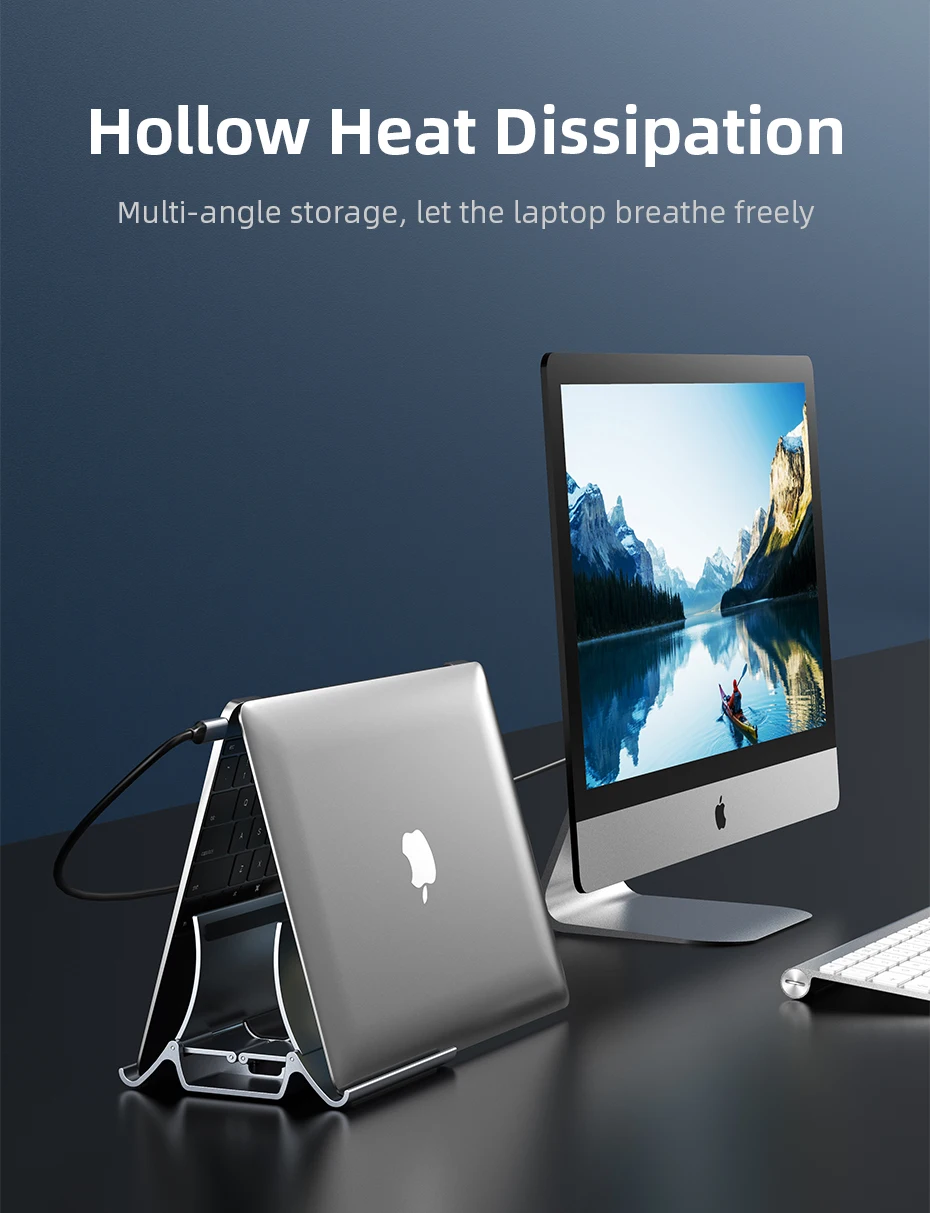 You can use one hand to put the computer into the stand ; gravity-sensitiveive design, no tools required. Very easy to use, can quickly help you organize the desktop. You deserve one vertical laptop holder. The hollow cooling feature allows your computer to dissipate heat faster by simply placing your laptop in an inverted triangle on our stand.