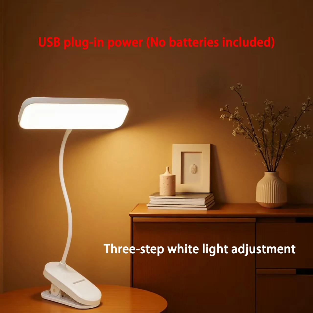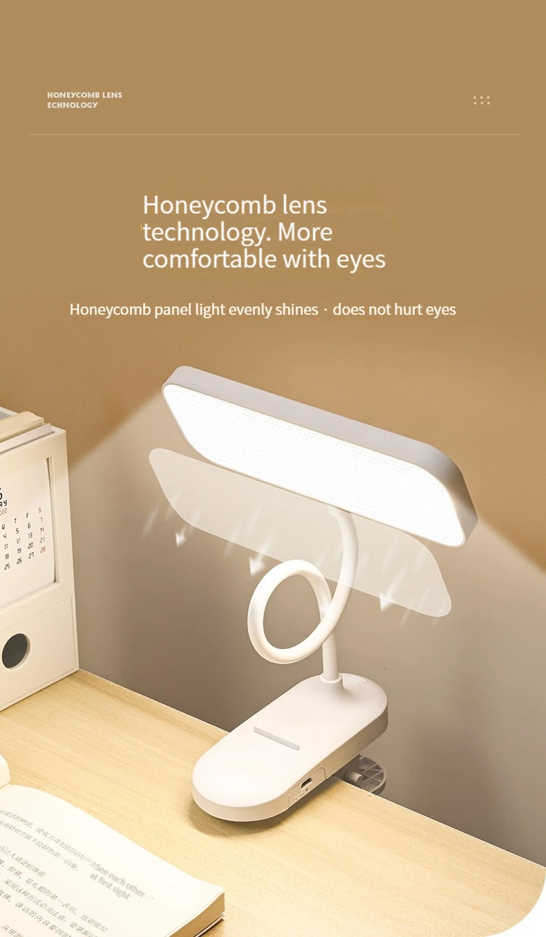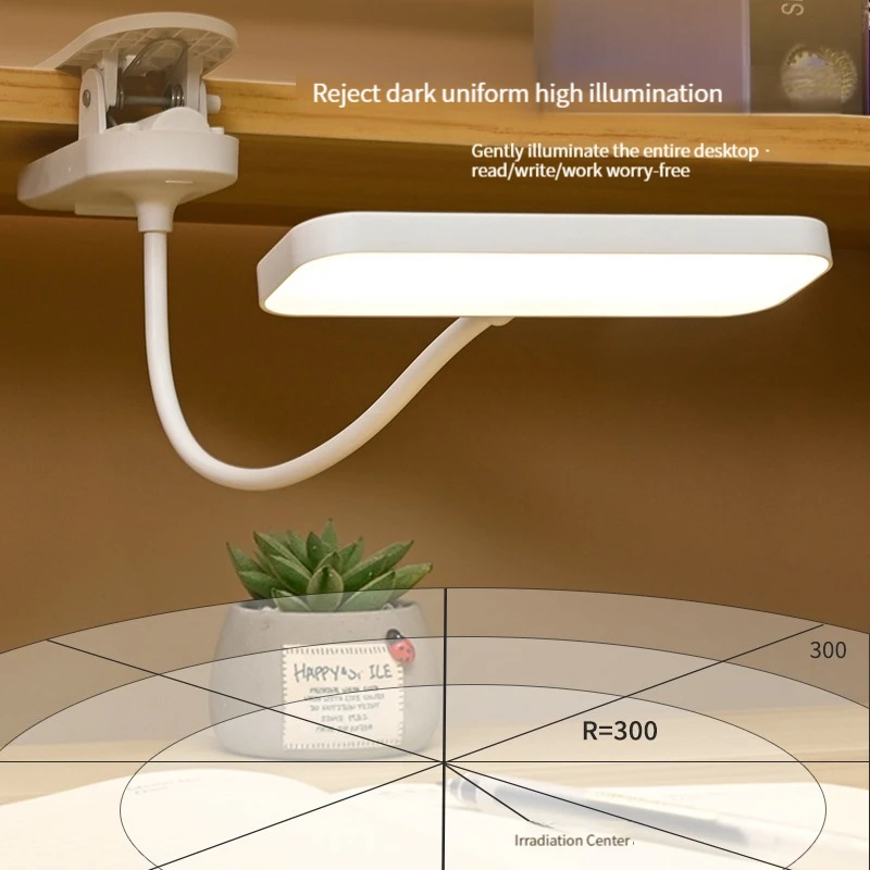 Clip-On Desk Lamp with Eye Care, USB Rechargeable & Plug-in Dimmable LED Light, Adjustable Study Lamp for College Dorm, Bedroom