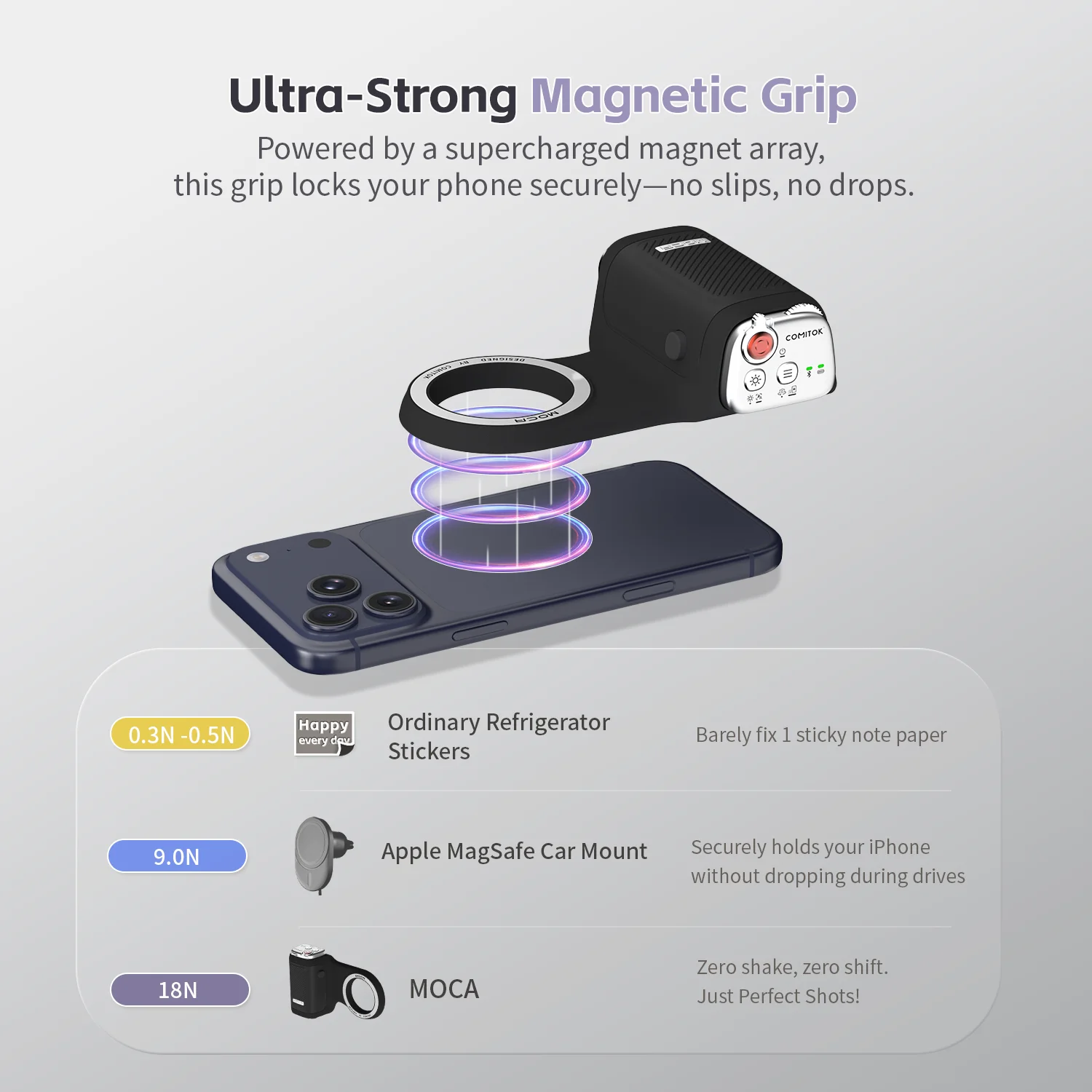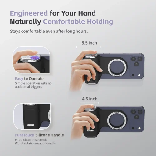 COMITOK Magnetic Phone Grip with Remote Control Portable Shooting Handle for iPhone Vlog Videos, Easy One-Hand Operation