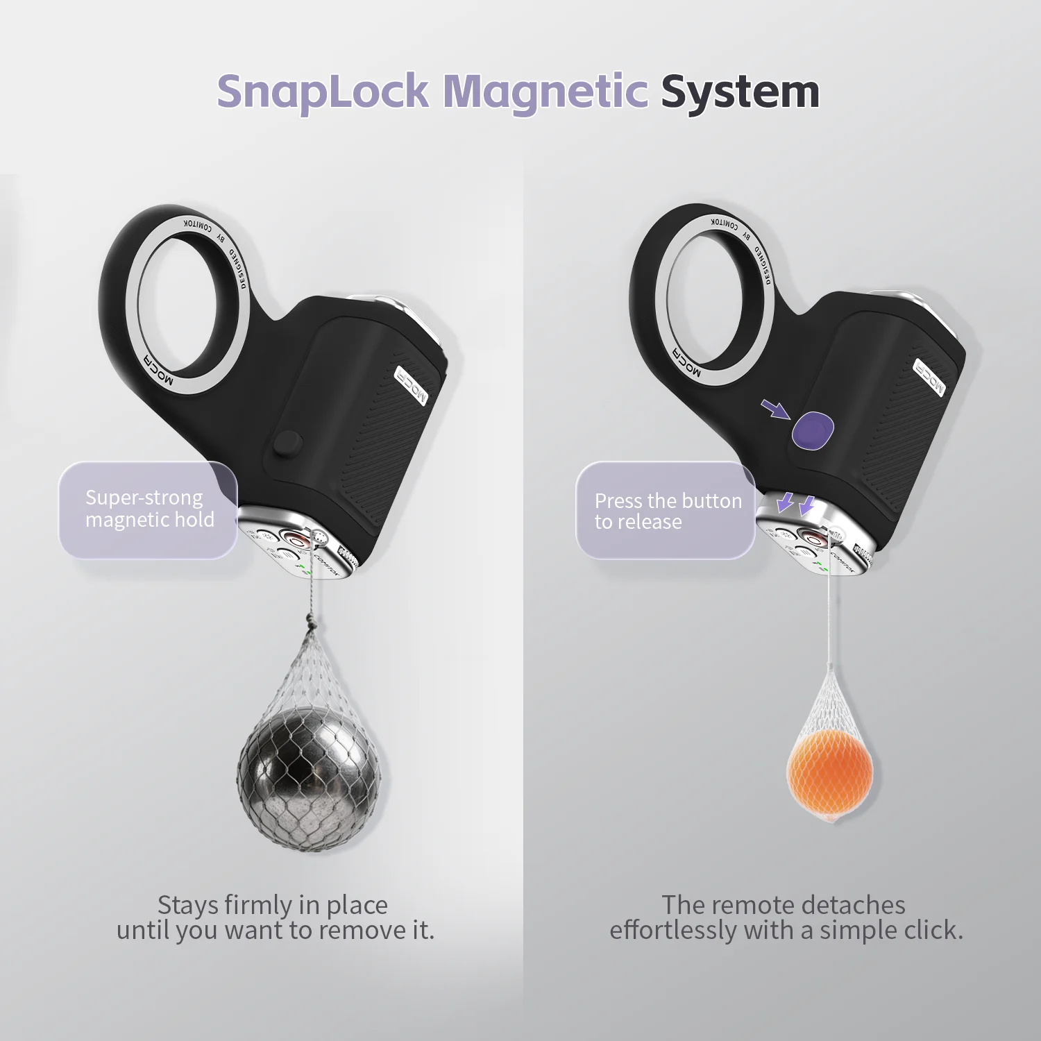• Instant Release: Press the side button to detach the remote when needed.