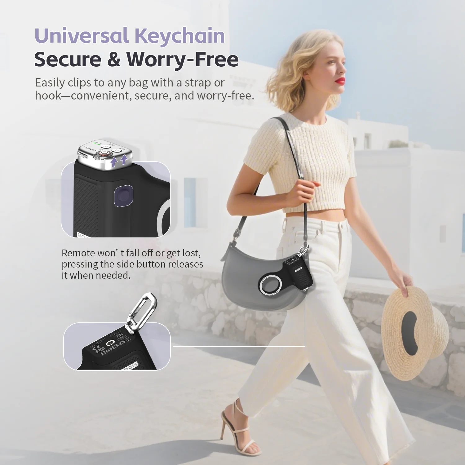 • Secure & Worry-Free: Easily clips to any bag strap, keyring, or hook.