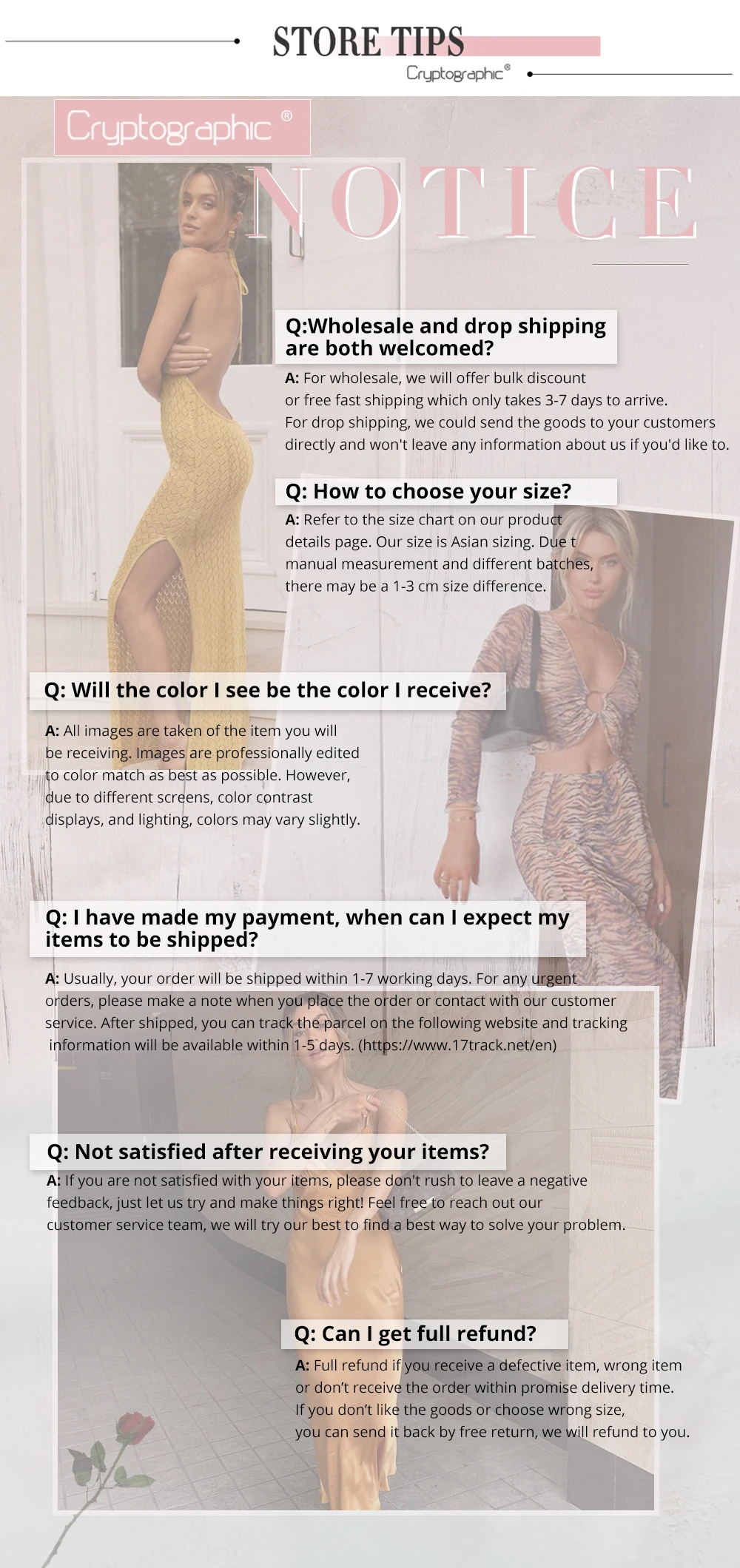 NOTE: 1.Please follow the size chart to select the size.Don’t select directly according to your habits. 2.This data was obtained from manually measuring the product, it may be off by 1-3CM. 3.Colour may vary due to lighting on images.The real pictures are closest to the true colour of the product. | ||||