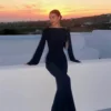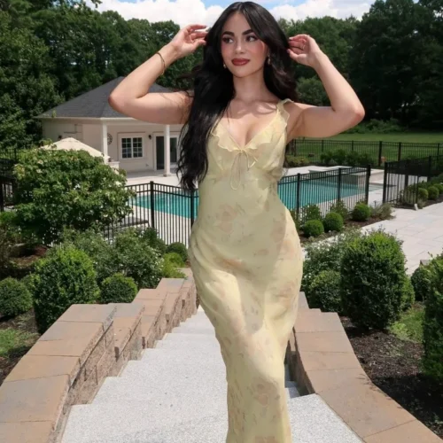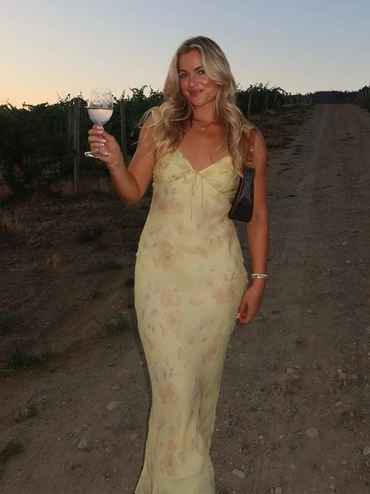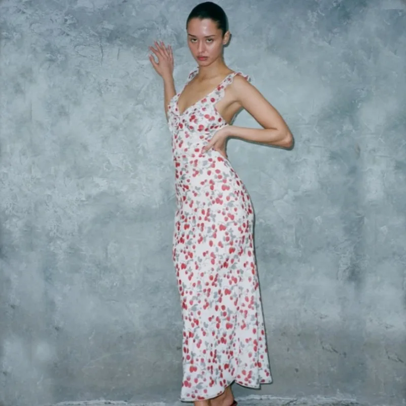 Cryptographic Floral Print Plunge Maxi Dress – Backless Summer Beachwear