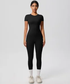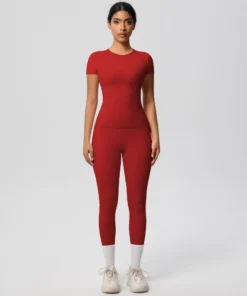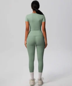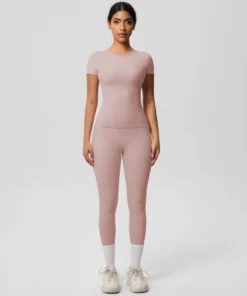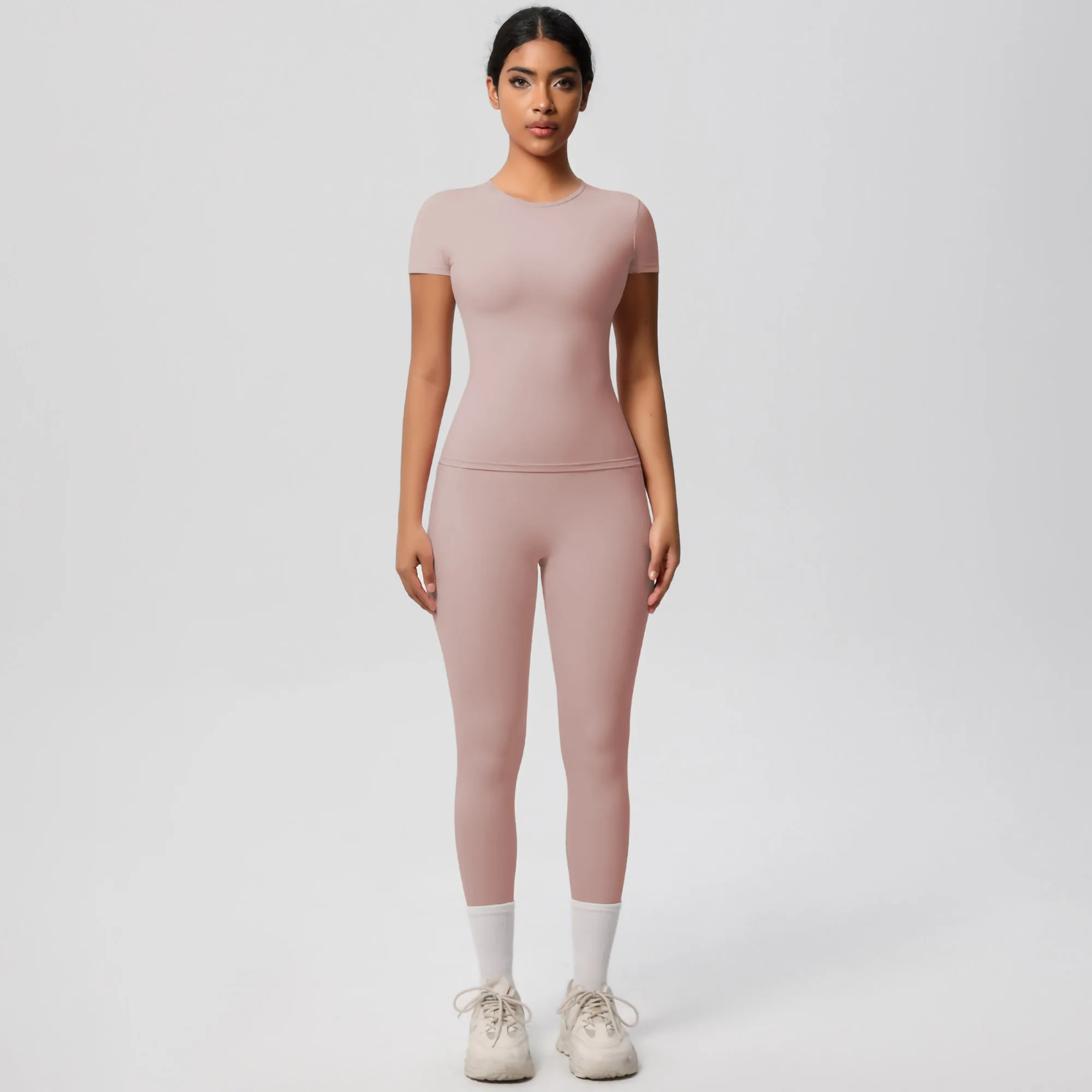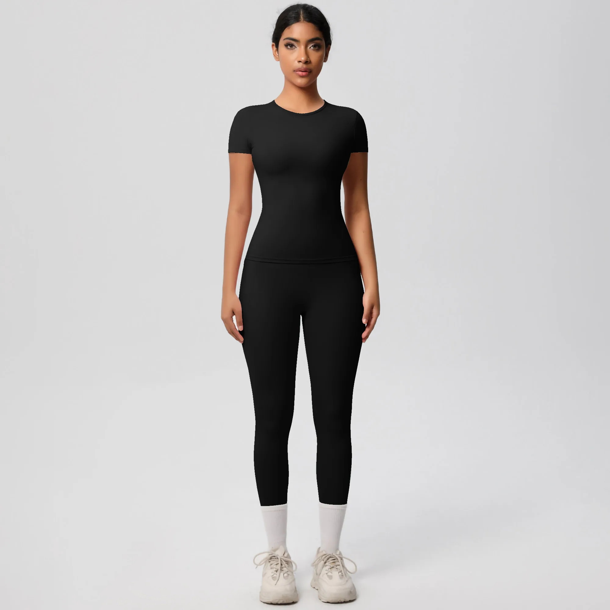 Customized women’s breathable yoga suit with tight-fitting short-sleeved trousers for fitness and running