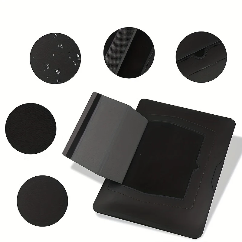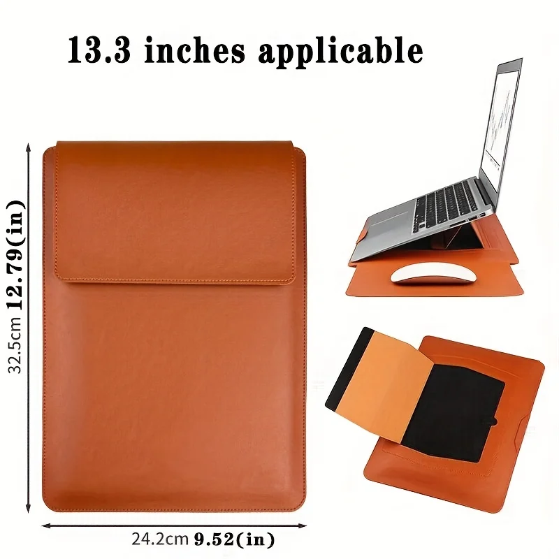 “Leather Sleeve & Ergonomic Stand Combo – 50% Slimmer than Carrying Separate Cases”