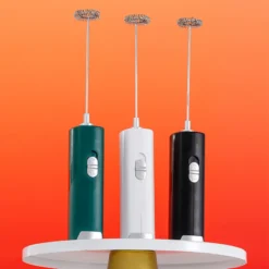 – Mini electric milk foamer blender for whisking and mixing beverages.