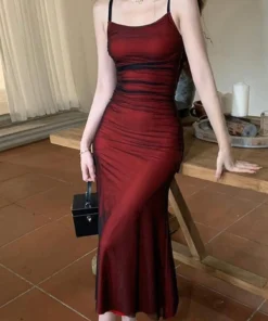 Off-Shoulder Long Dress with Pleated Skirt for Women in Elegant Red