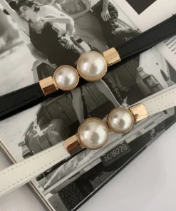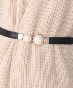 Elastic Womenβs Belt with Elegant Double Pearls Buckle for Dresses and Skirts Decor