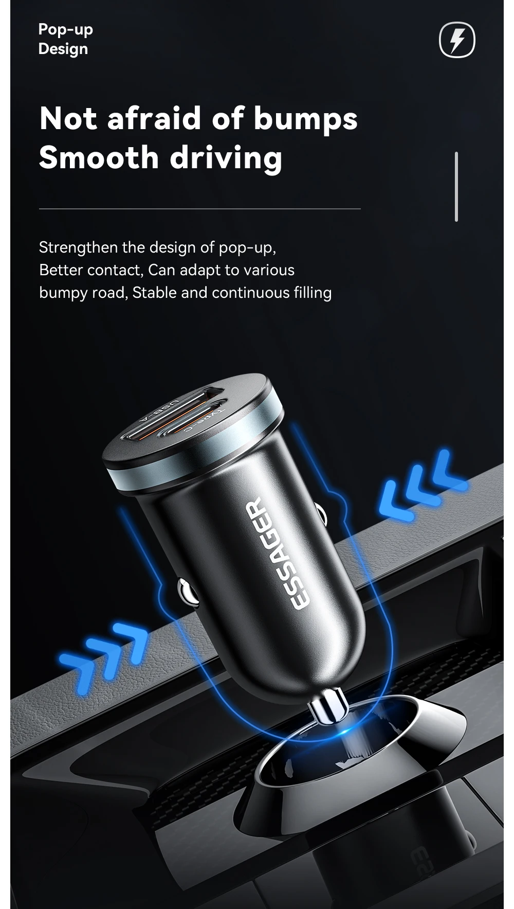 • Compact and Portable :Its compact and portable design makes Essager car charger easy to carry around, perfect for on-the-go charging needs.