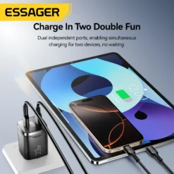 – Essager 33W GaN USB Type C Charger with digital display and PD fast charging capability.