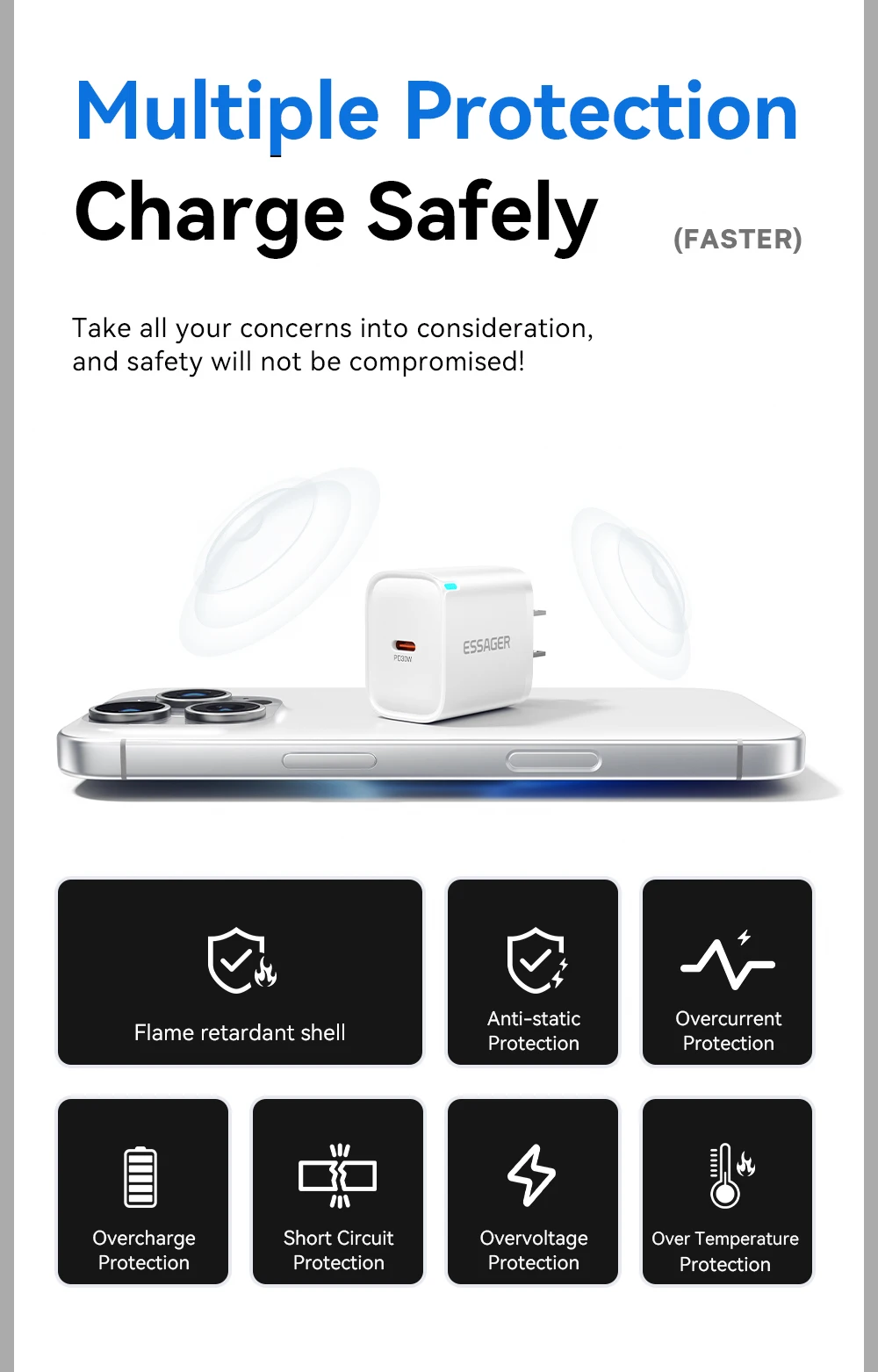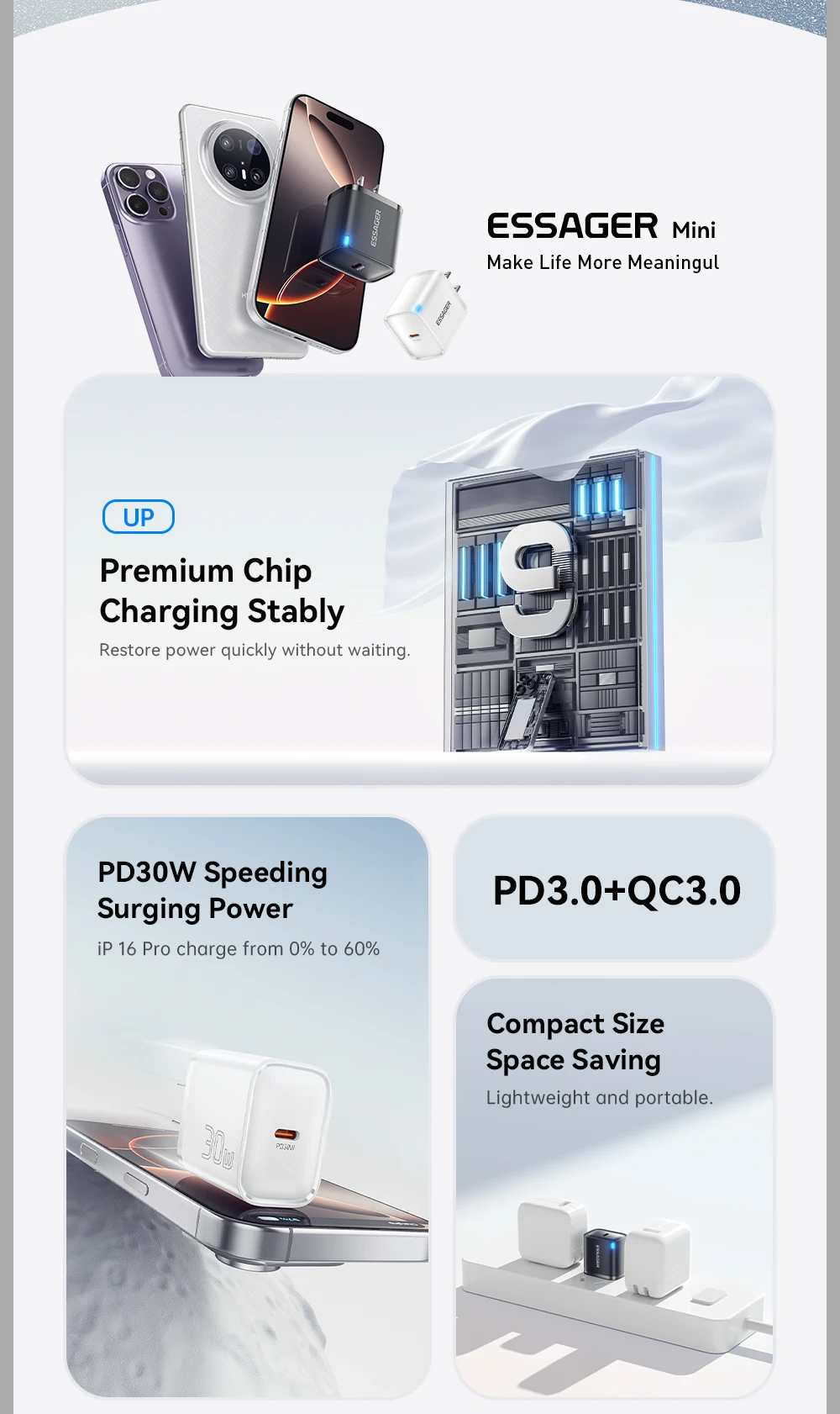 Essager Mini 30W Fast Type C Charger – PD & QC3.0 Compatible with iPhone, Samsung, and Xiaomi