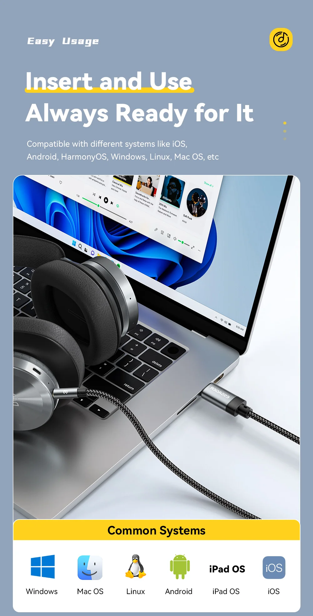 | Feature 4 | Can be used with speakers and headphones |