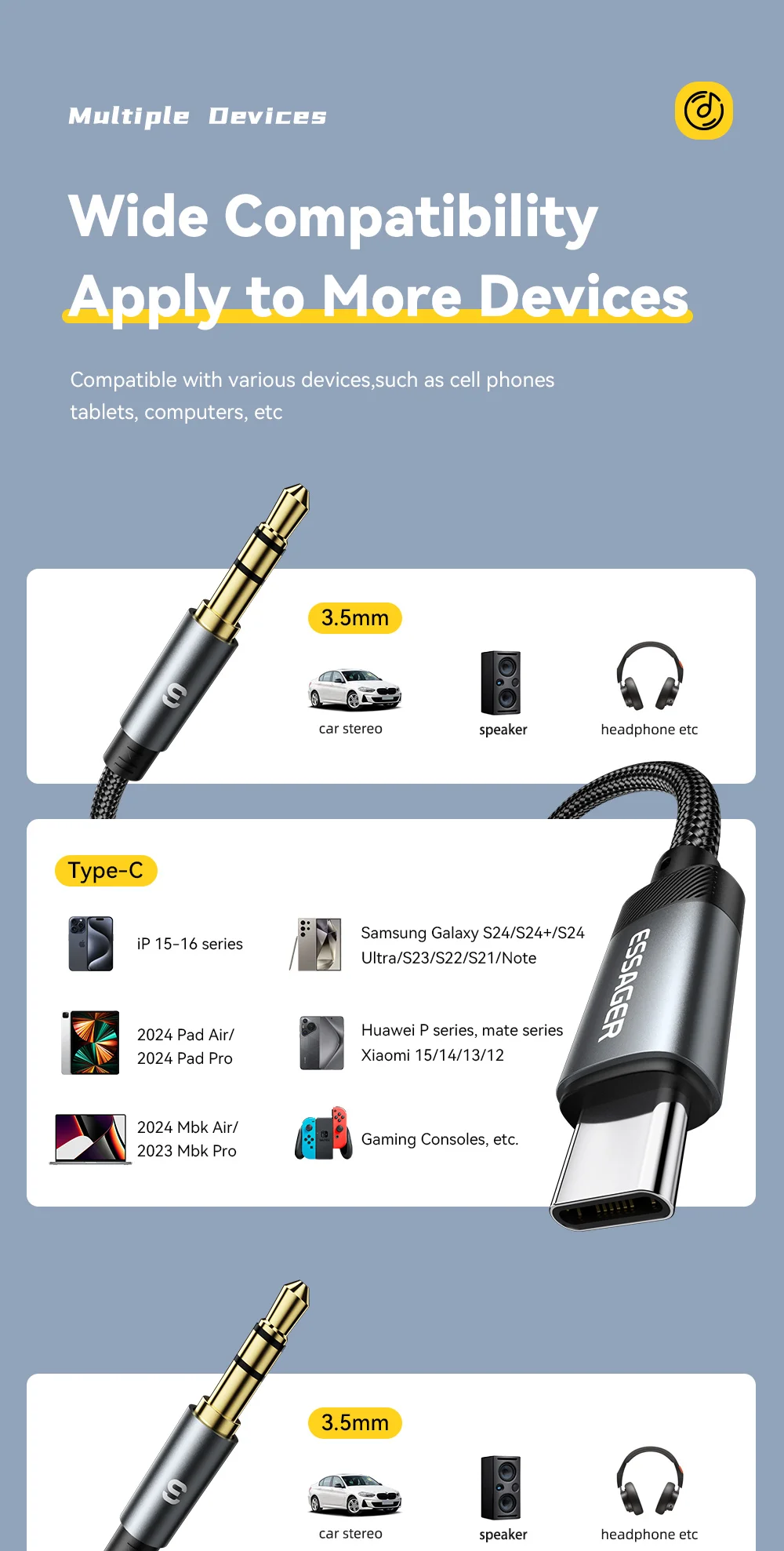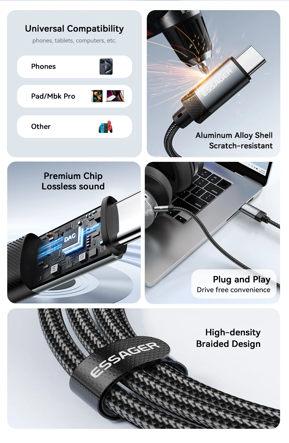 Be the first to review “Essager USB C To 3.5mm Aux Jack Adapter Speaker and Headphone 3.5 Mm Aux Audio Splitter Jack 3 5 Cable for iphone Huawei Xiaomi”
