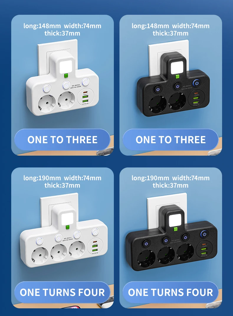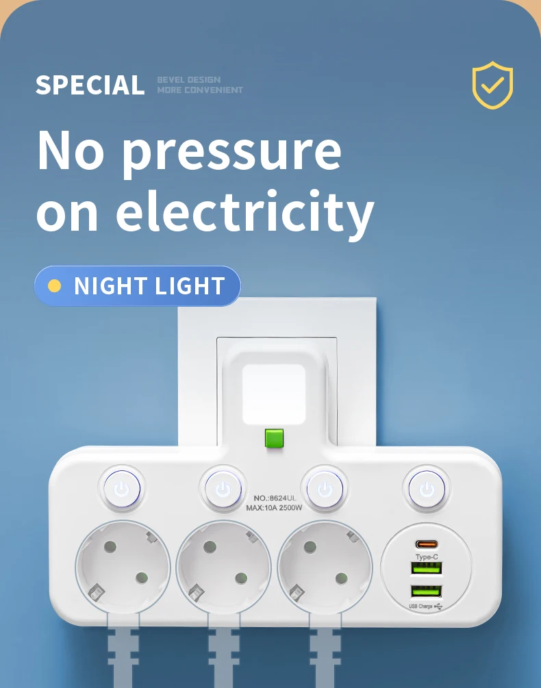 Home Extension Socket : Office Plug with Socket/Smart Power Strip (EU)/Control switch night light