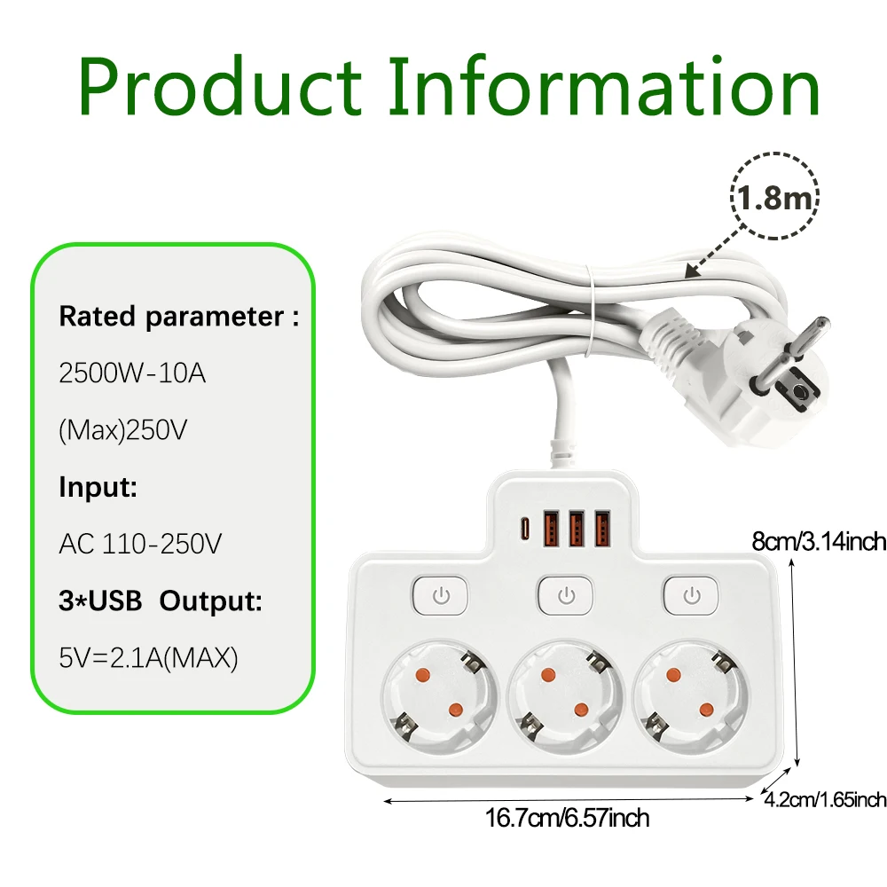 Be the first to review “EU AC Plug Power Strip Wall Mounted Independent Switch Multitap Socket Network Filter With USB Charging Network Filter Adapter”