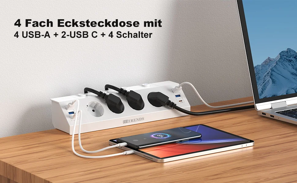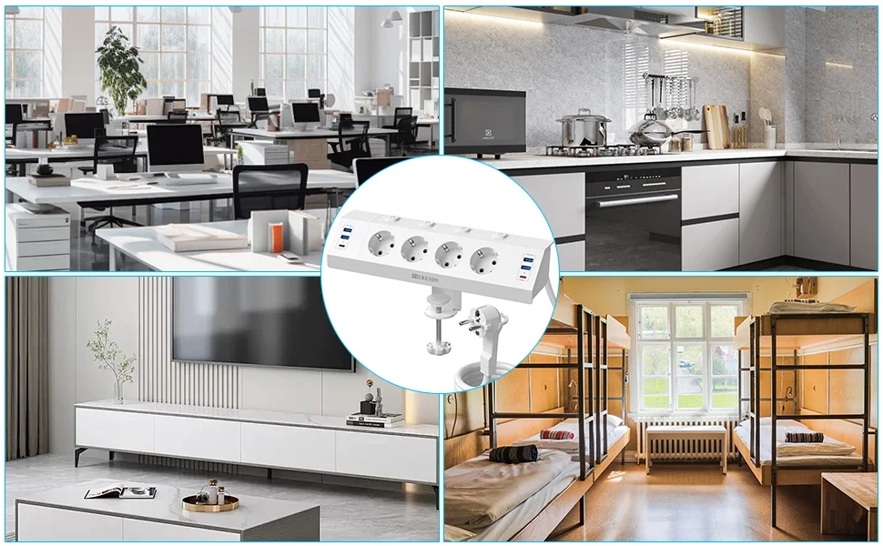 ★ Optimized charging design : These desktop sockets come with 4 Schuko sockets, 4 USB-C (PD 20 W) and 2 USB-A (5 V-2.4A). With a total power of 32 W, it can automatically detect your device and distribute power for fast charging of your electronic devices
