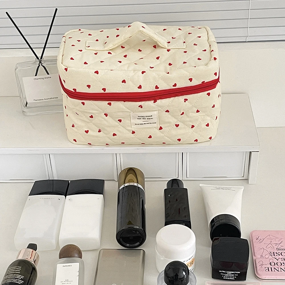 Fashion Ins Heart Women Quilting Makeup Bag Large Capacity Toiletry Cosmetic Storage Pouch Handbag Ladies Zipper Makeup Bag