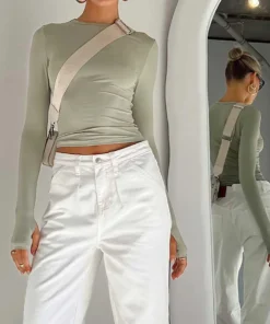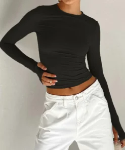 Be the first to review “Long Sleeve Crew Neck T-shirt with Thumb Holes for Women – Solid Slim Fit Crop Top for Daily Streetwear”