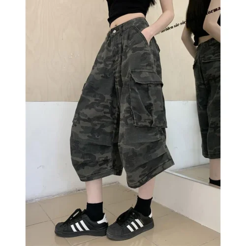 Be the first to review “Female Streetwear Denim Cropped Pants Lady Retro Fashion High Waist Cargo Jeans Girls Camouflage Baggy Wide Leg Trousers”