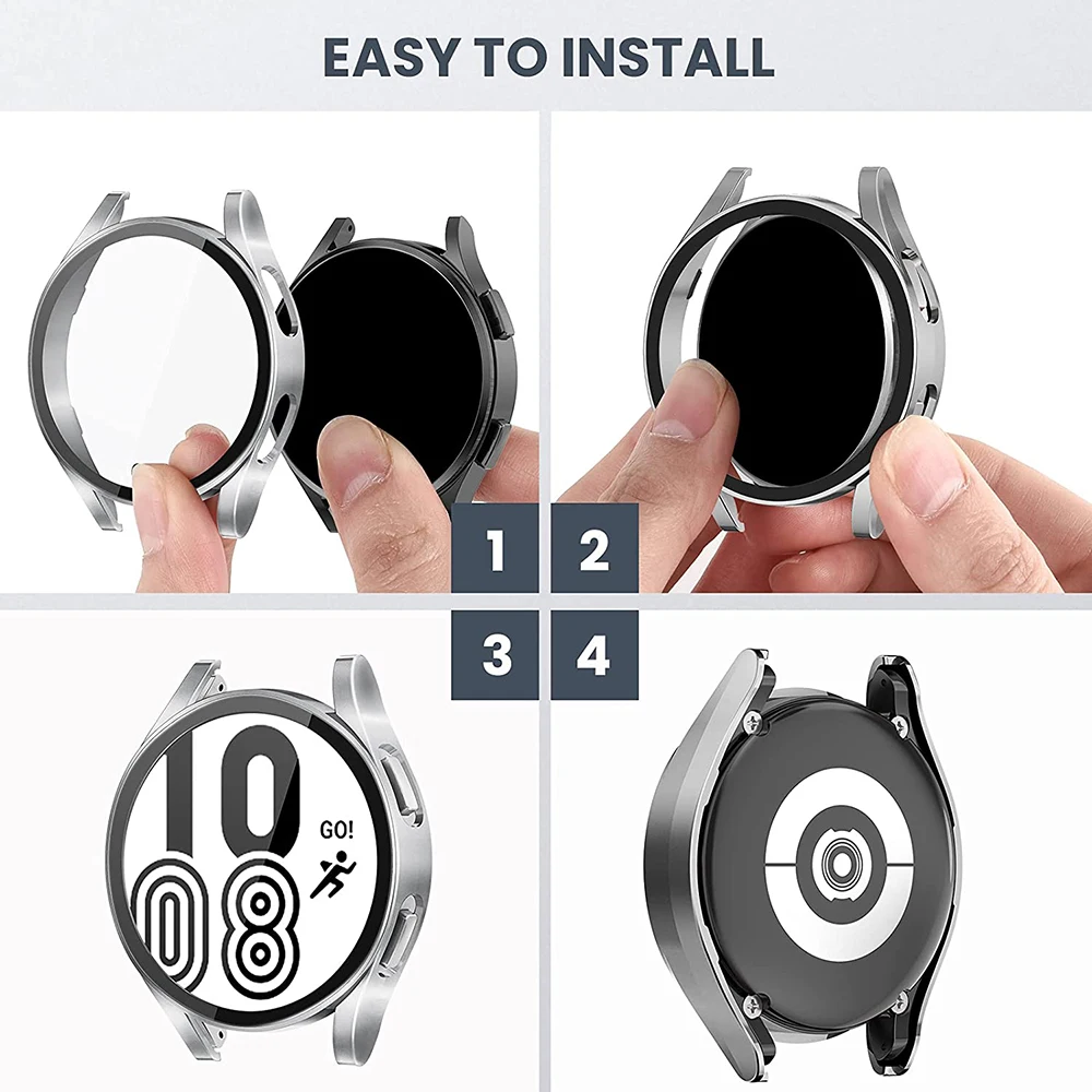 for Samsung Galaxy 4 5 6 7 44mm 40mm tempered glass+PC fully covered protective watch case, shock and scratch resistant