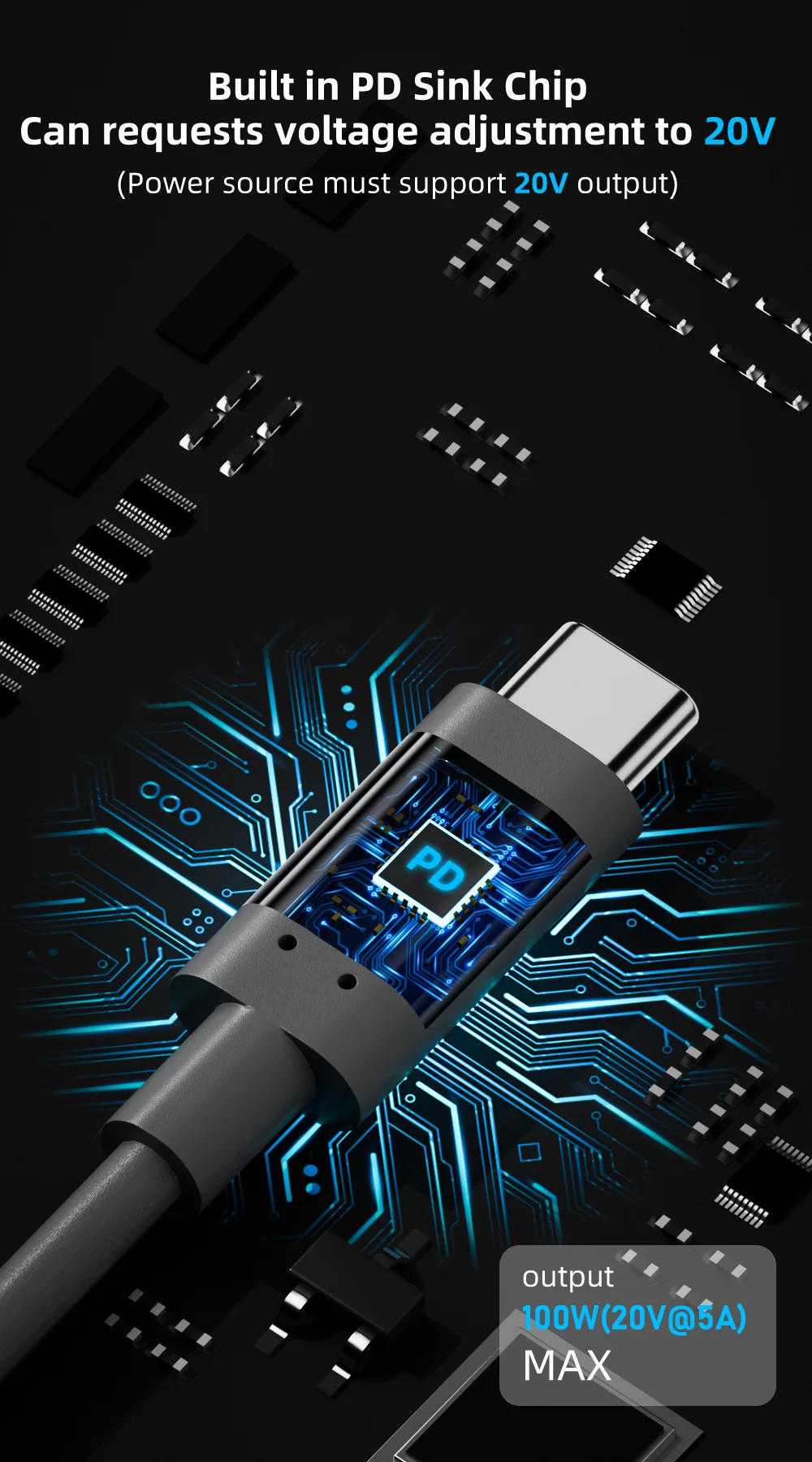 【High Power Output】- This cable supports a maximum power output of 100W (20V/5A). To utilize its full potential, a PD power adapter or source capable of providing at least 65W (20V/3.25A) output is recommended. Always check the specifications of your power supply for compatibility.
