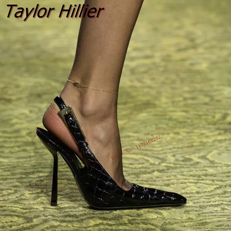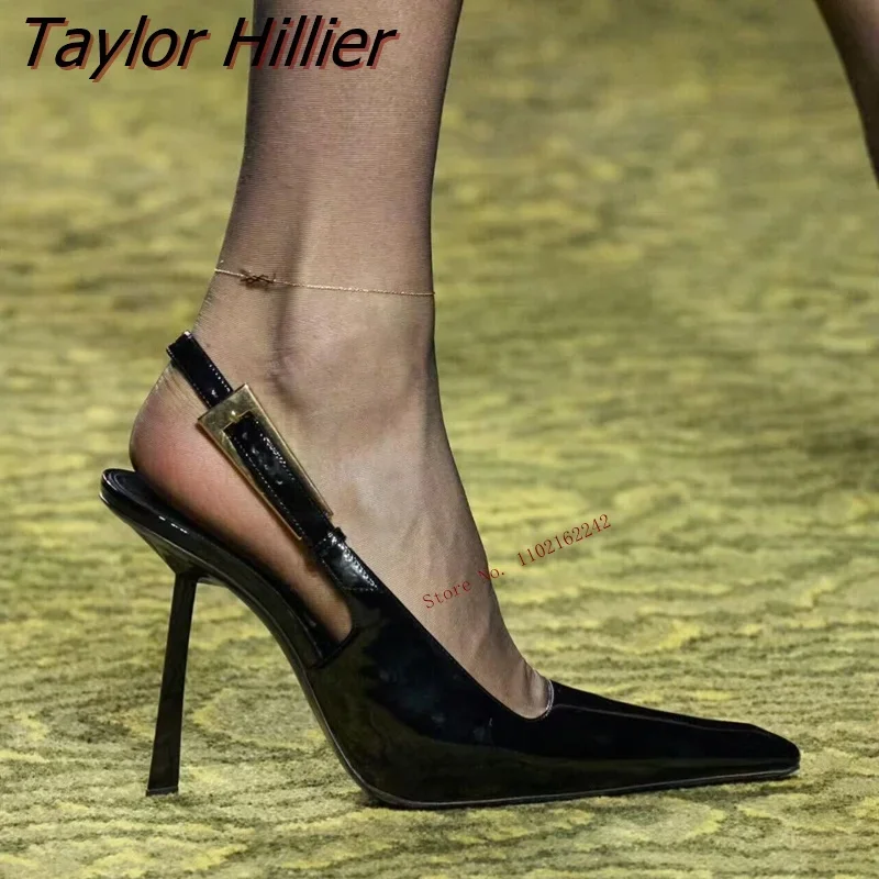 Leather Back Strap Pumps with Pointed Tip Design for Women