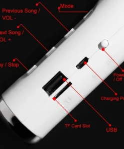 – Five playback modes: TF card playback, Bluetooth playback, USB flash drive playback, 3.5mm AUX line playback, and FM radio.