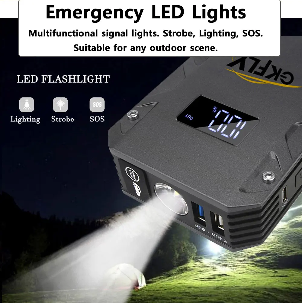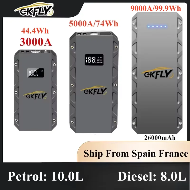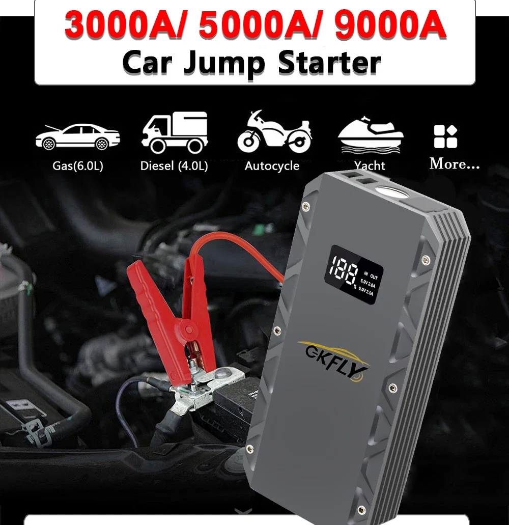 GKFLY High Power Car Jump Starter 9000A 5000A 3000A Portable Starting Device Power Bank Car Battery Booster Buster for Petrol