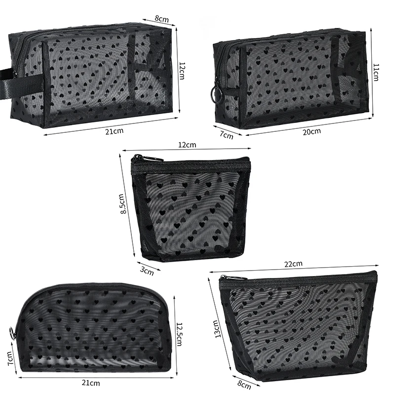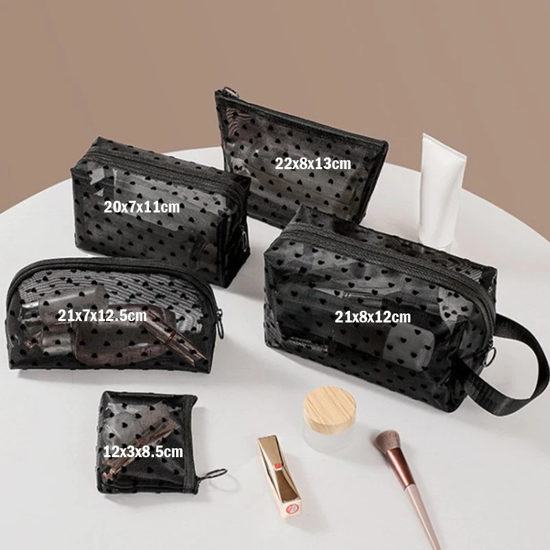 Heart Transparent Mesh Makeup Bag Multifunction Portable Women Cosmetic Storage Pouch Ladies Toiletry Lipstick Organizer Bags