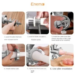 – Manual kitchen meat mincer for grinding meat, vegetables, and making pasta.
