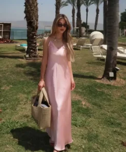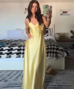 Sleeveless Maxi Dress with V Neck and Sling Design in Yellow for Women
