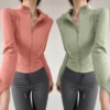 HH Women’s Autumn Faux Leather Jacket – Casual Long Sleeve Zipper Coat