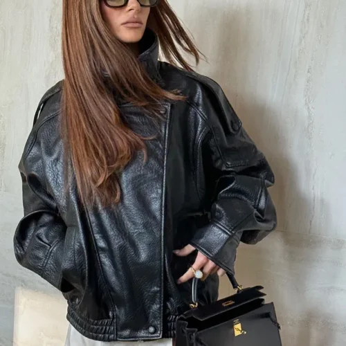 Be the first to review “HH Women’s Autumn Faux Leather Jacket – Casual Long Sleeve Zipper Coat”