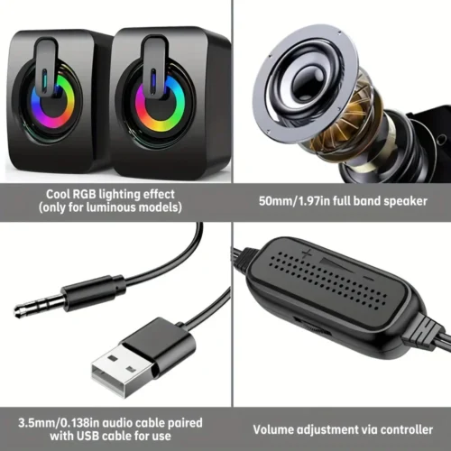 • USB Wired Connection :The speakers are equipped with a USB wired connection, ensuring stable and high-quality sound transmission from your desktop computer.