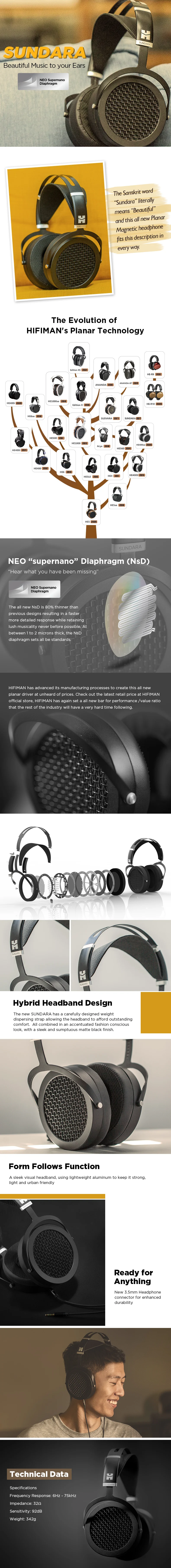 HIFIMAN Sundara Over-Ear Planar Magnetic Headphones – Black, High Fidelity Design