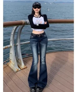 Bootcut Jeans with High Waist Slim Fit for Women – Retro Denim Trousers