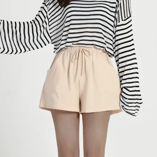 Be the first to review “ITOOLIN High Waisted Black Linen Workout Shorts for Women”