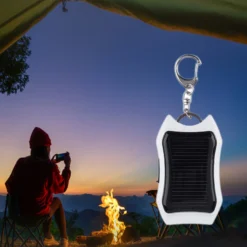 – Keychain Emergency Power Bank with 3 LED Lights, designed for portable charging of cell phones.